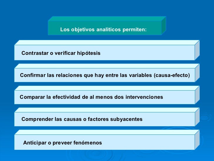 objetivos analíticos permiten: Contrastar o verificar hipótesis Confirmar las