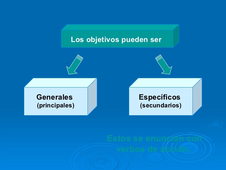 objetivos pueden ser Generales (principales) Específicos (secundarios) Estos se